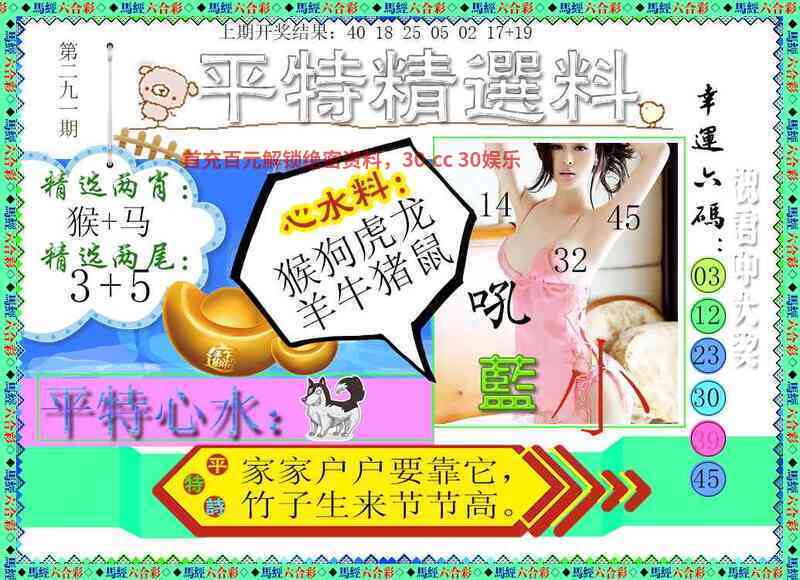 295期【解一句真言】:实实在在不夸张,实实在在,解吉美生肖马蛇龙羊鸡兔 王牌看好波色:绿波+红波 王牌看好单双:双数+牛鸡 |